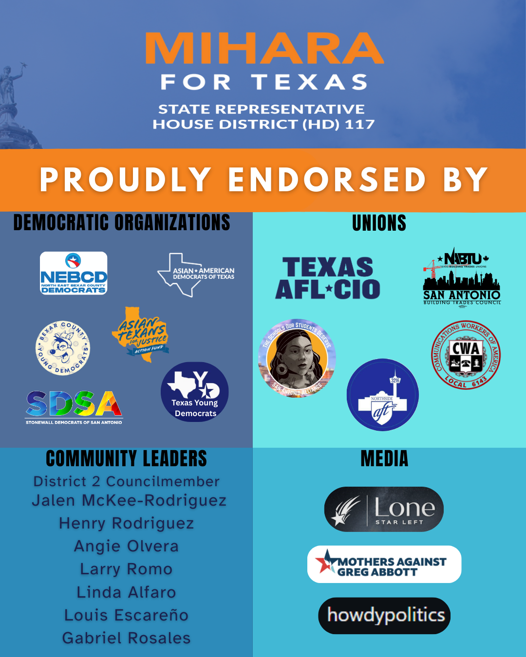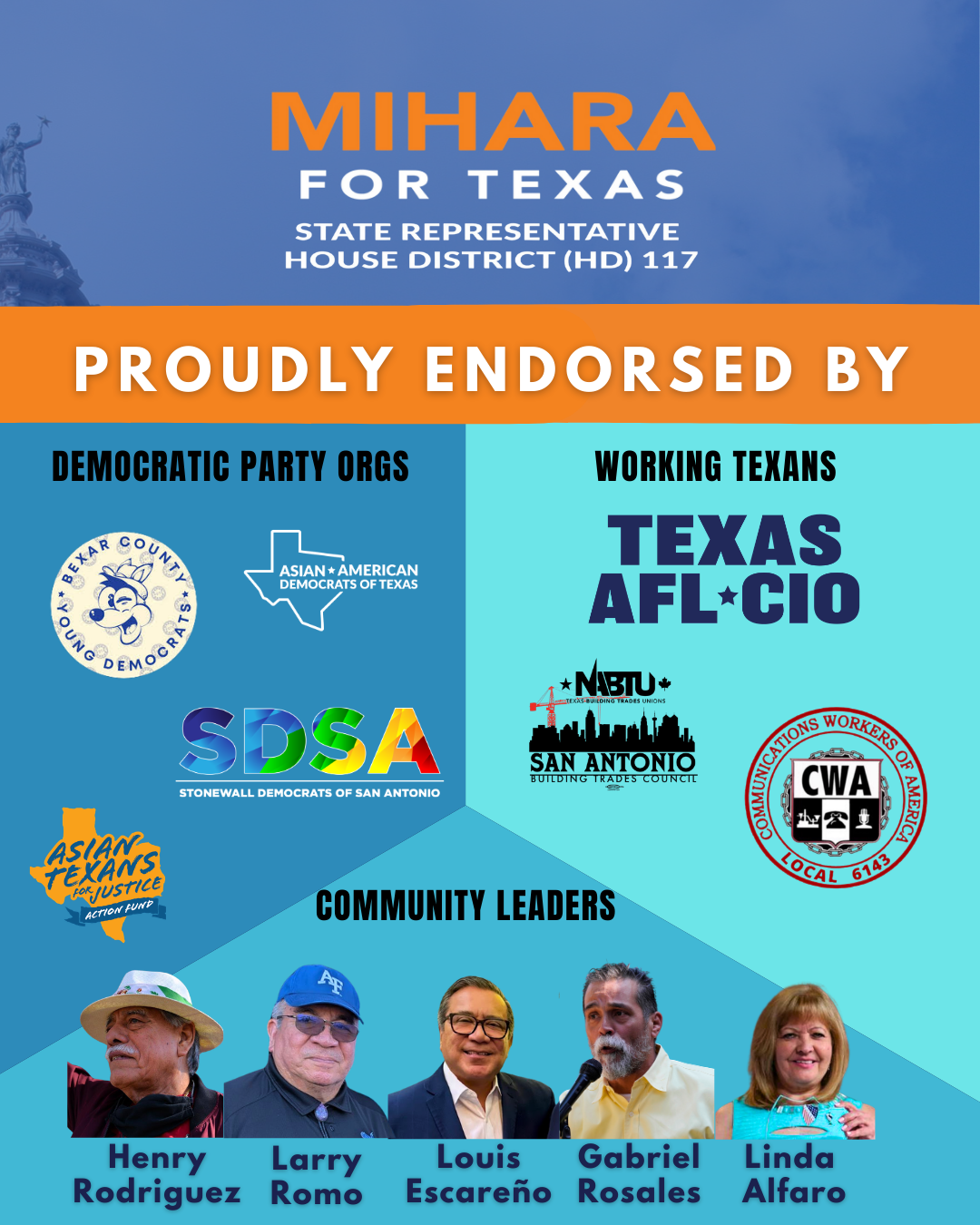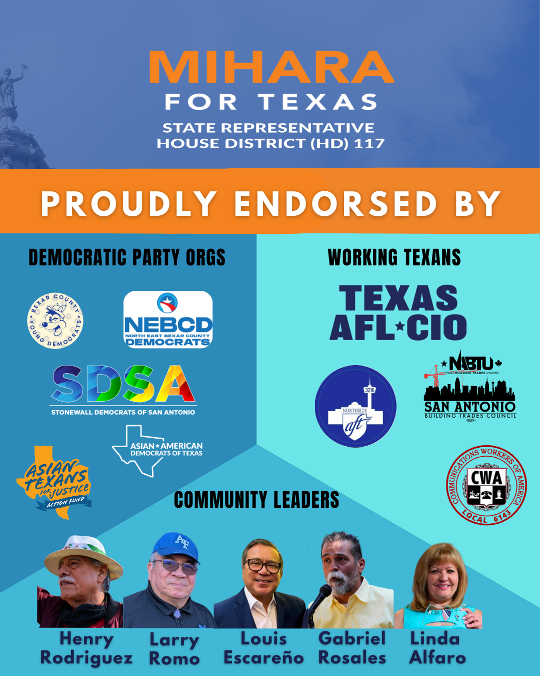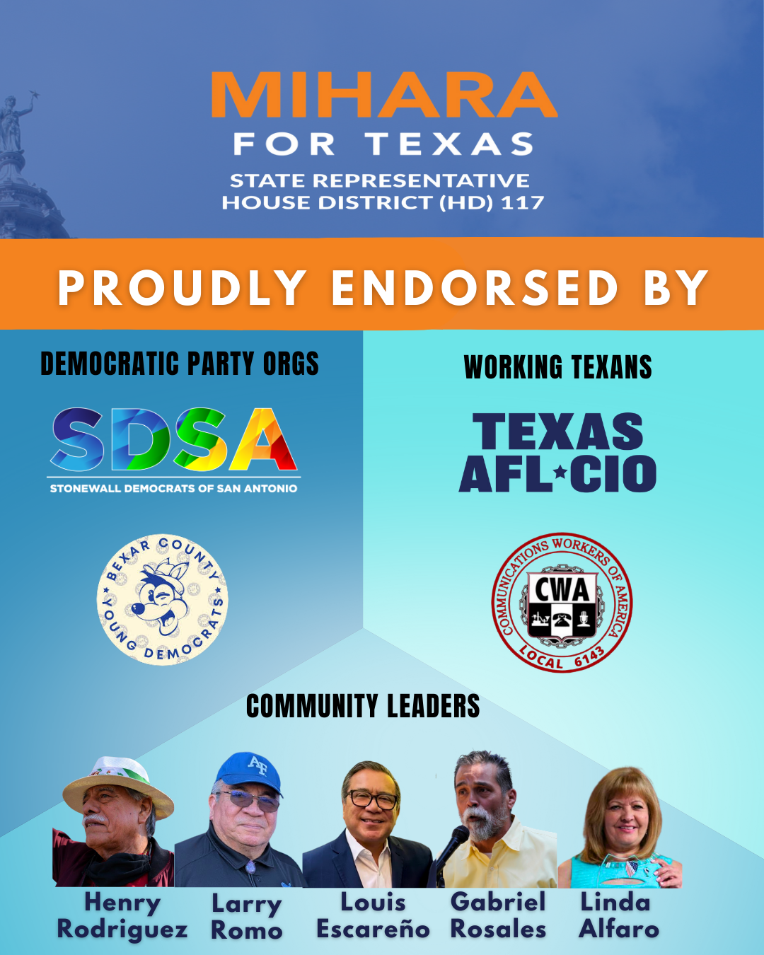 I feel my experience makes me uniquely qualified to work in our state capitol fighting for the issues that affect so many of us today. Please join me in the fight to make San Antonio a place where everyone has a fair shot.